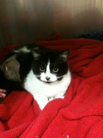 Puddin is the kind of cat that will melt anybody's heart! she is around 8 months and is a domestic short hair. She has a black and white coat. She was found injured nearby as she was hit by a car and brought into the stud park vet to be cared for and is now looking for a loving family to adopt her. Her leg has healed well on it's own so there was no need to perform surgery as she is very comfortable and is able to use it well. She is still very much a kitten and loves to play with her toys. She is also very smoochy and loves a cuddle and a pat!