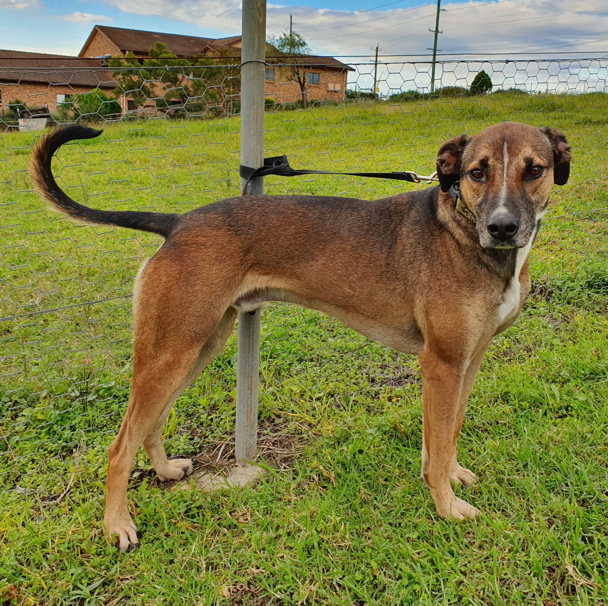 Louie is a sweet natured dog. He was regretfully surrendered as his owners were worried about his safety. See, Louie likes to chase kangaroos and once he is in pursuit, there's no stopping him. Being on a farm, this hobby comes with the risk of the neighbours not being pleased to see an unknown dog racing through their property - and rightfully so.
