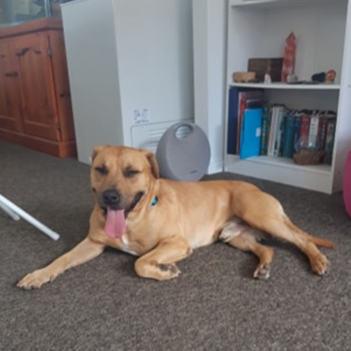 Introducing Bob, our sweet 6 year old mixed breed. Bob is supposedly a Mastiff x but he looks more like an English Staffy possibly with some Labrador or Ridgeback mixed in. He’s got a short and stocky staffy body and a Labrador or Ridgy’s boofy head ! No matter what breed mix he is Bob is an affectionate dog who loves his people once he is comfortable with them.