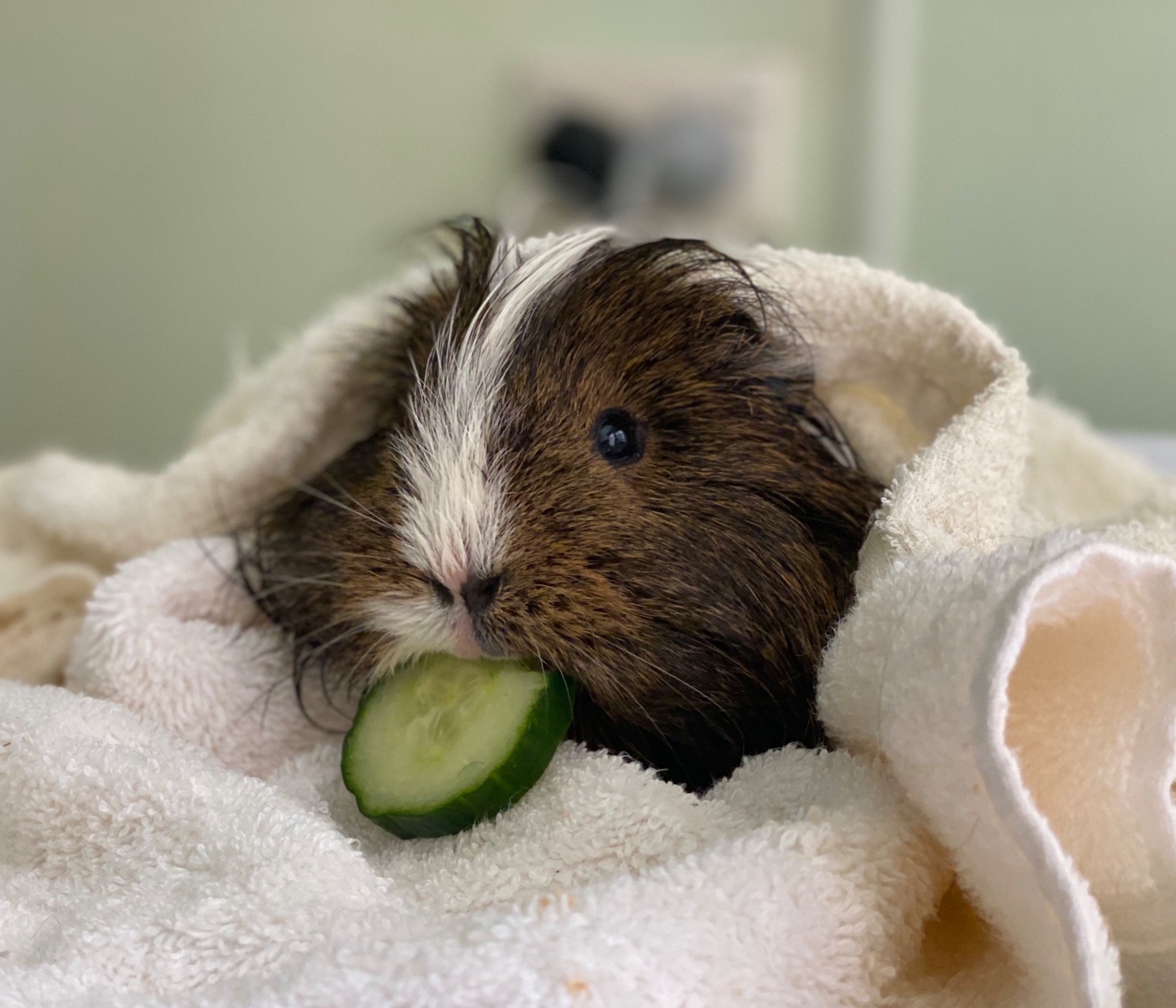 Now that he is de-sexed he can be paired with a female guinea pig without risk of them reproducing.