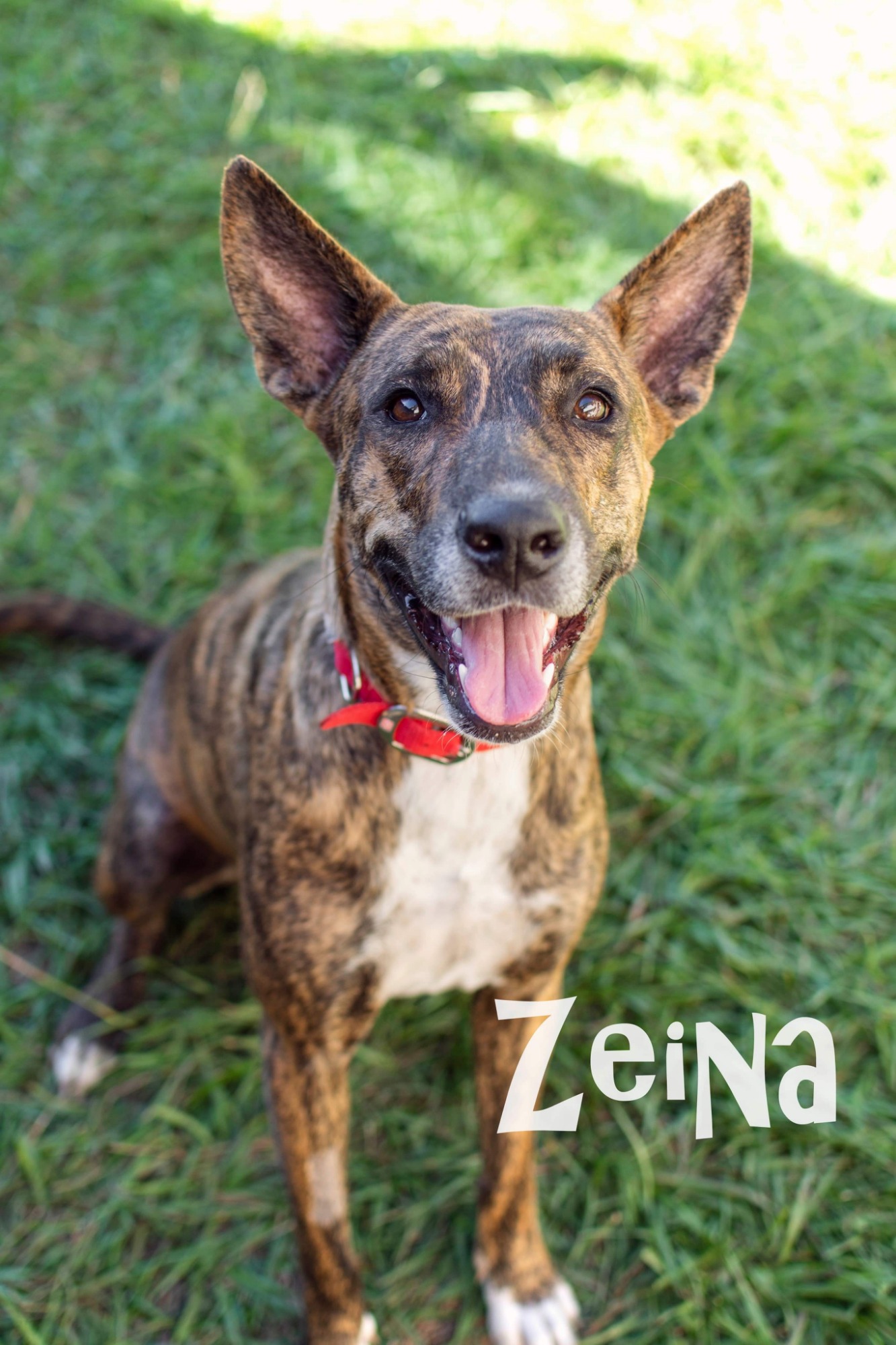 Zeina is good with other dogs her size, not tested with cats and not good with chickens 😬 She will require secure fencing to keep her safe in the yard.