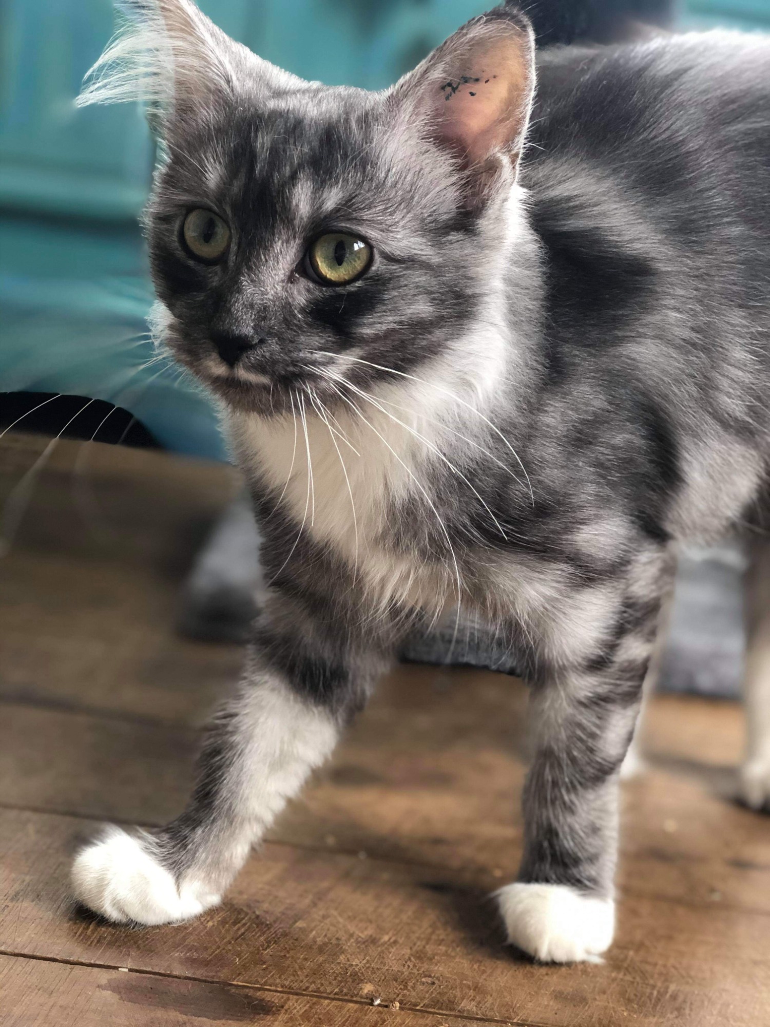 She would love a home with older children who are cat experienced or teenagers. The little ones noises still startle her.
