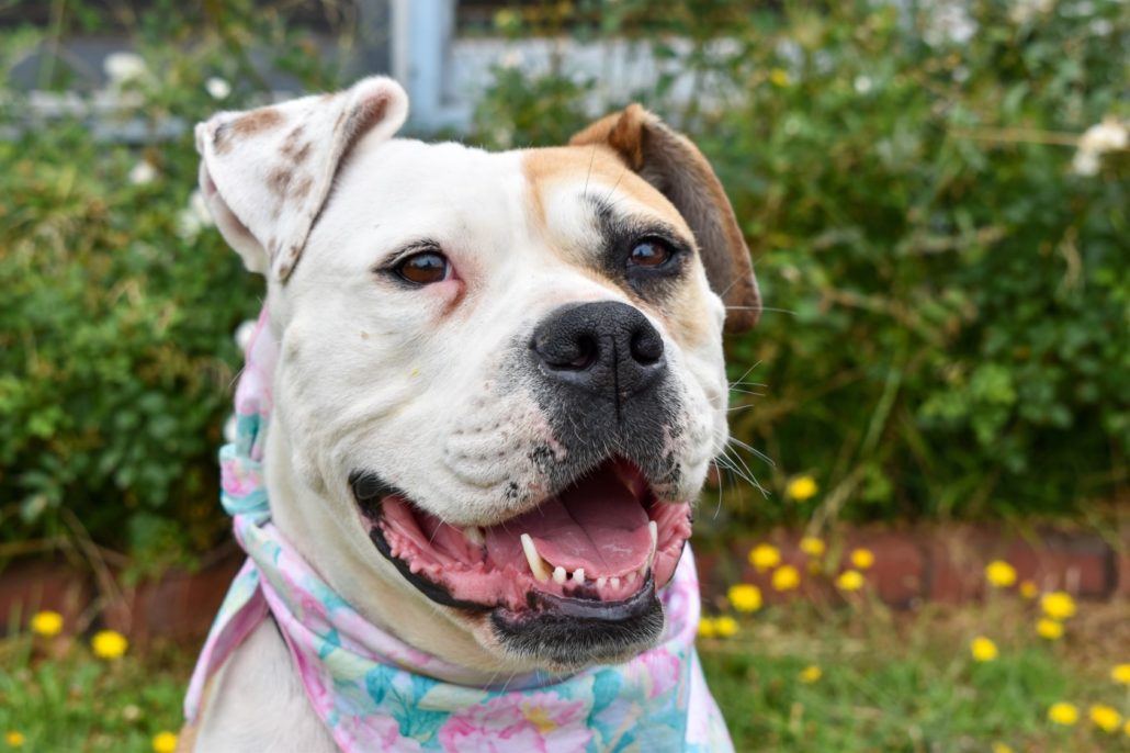 We have been working on lots of positive experiences for Tashy to help bring her out of her shell. It’s taken a few weeks but she is really showing off her true personality now and she is the goofiest, dorkiest but cutest dog ever! She loves to gallop and pounce around with her doggy foster brother, she head butts him, nibbles his ears and smacks him with her paw. She sometimes doesn’t realise she is larger in size and can come off slightly intimidating to smaller dogs, this can upset them and Tash doesn’t realise it upsets them and will keep pushing for play. Her forever home would need a large doggy friend that loves to play rough and can tolerate her weird play style.
