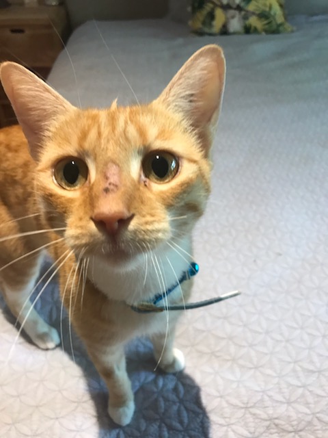 Elma is a petite and rare female ginger feline who is very sociable and affectionate in nature. Elma enjoys lots of pats and cuddles and is always purring. Elma is excellent in assisting me work from home and will always sit on my keyboard.