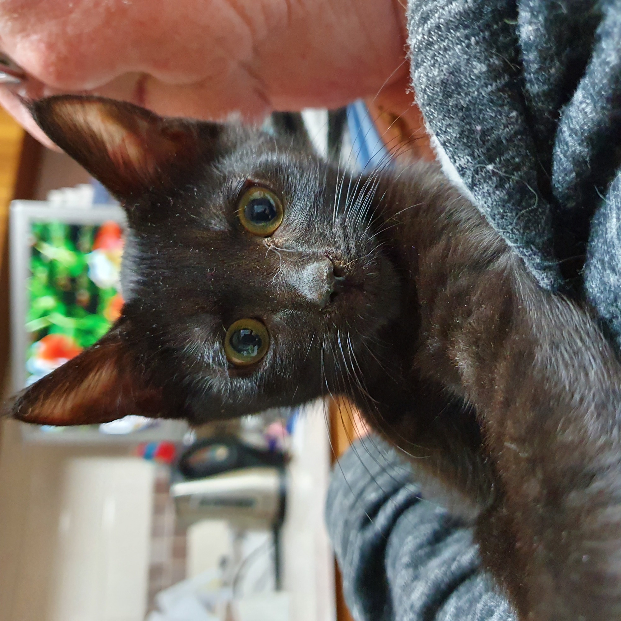 Onyx is a super affectionate and smoochy kitten that wants lots of cuddles and to sit on your shoulder.