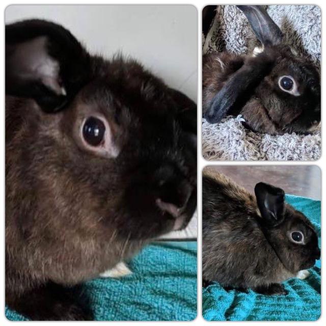 Hi I'm Moana. I'm a shy bunny with beautiful, fluffy black fur, looking for my forever home. I absolutely LOVE attention and cuddling up to you, and I'm great in families with older kids. I'm really shy but if you give me lots of attention and snuggles, or another bunny friend, I'm sure I can come out of my shell!
