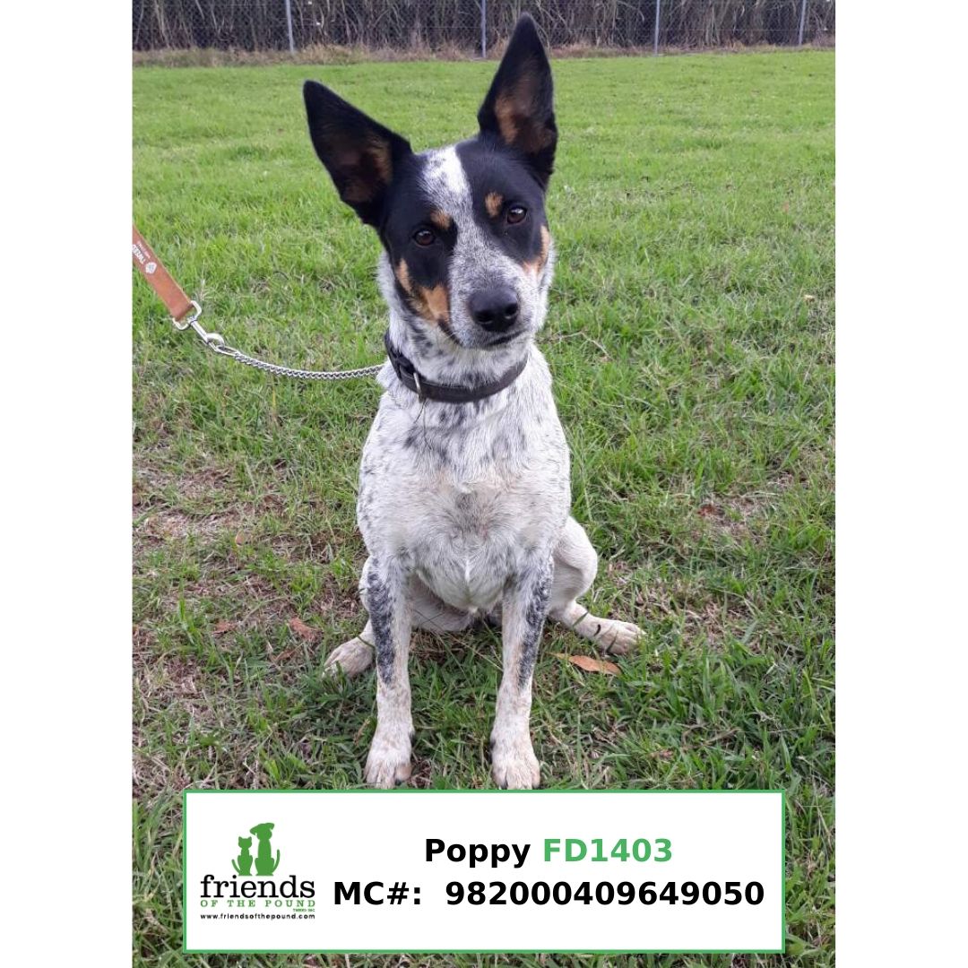 POPPY is a desexed female blue cattle dog x. She is smart, active and has a good nature and would suit an active family with good fencing.