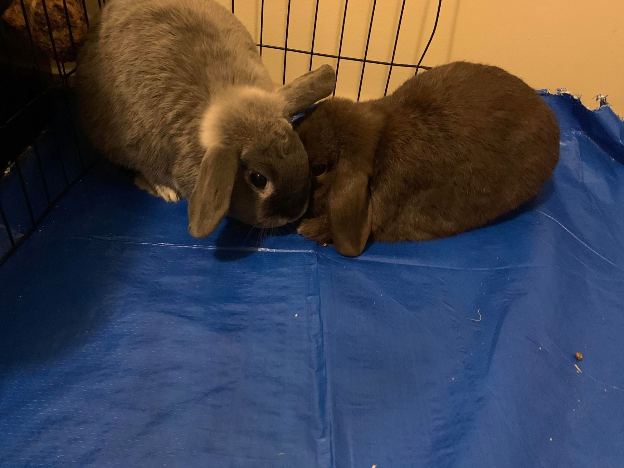 His little buddy Thumper is a 1 year old shy boy and a bit skittish, but when you sit down and put in the effort to gain his trust he’ll come around and enjoy head pats, he can just be a bit flighty so he needs someone calm. He’s really sweet and loves to flop and chill but I’ve seen him do the odd zoomie too. He’s a bit of a fussy eater and if you’re not careful pudge will eat it all. I think he would also benefit from lots of room and lots of attention.