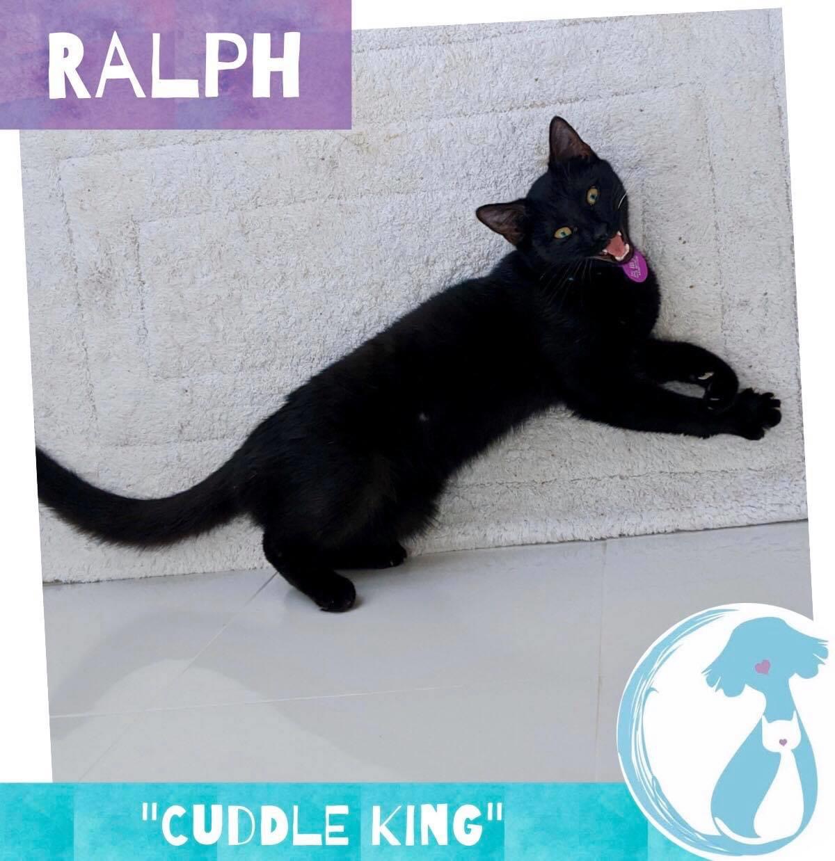 Ralph is single-handedly trying to dispel the myth that cats are independent and aloof. He LOVES people, and is happiest when all the attention is on him. Ralph is a cuddle bug, and head pats, belly rubs, or any type of attention will get him purring.