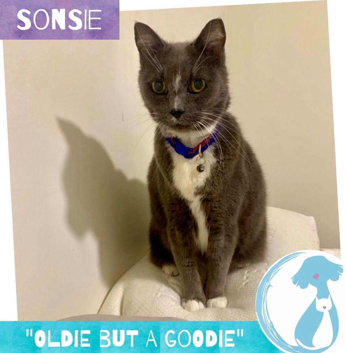 Sonsie is ready to run rings around your heart. She’s had a full kitty doctor check-up including blood testing for any older gal ailments, and passed with flying colours!