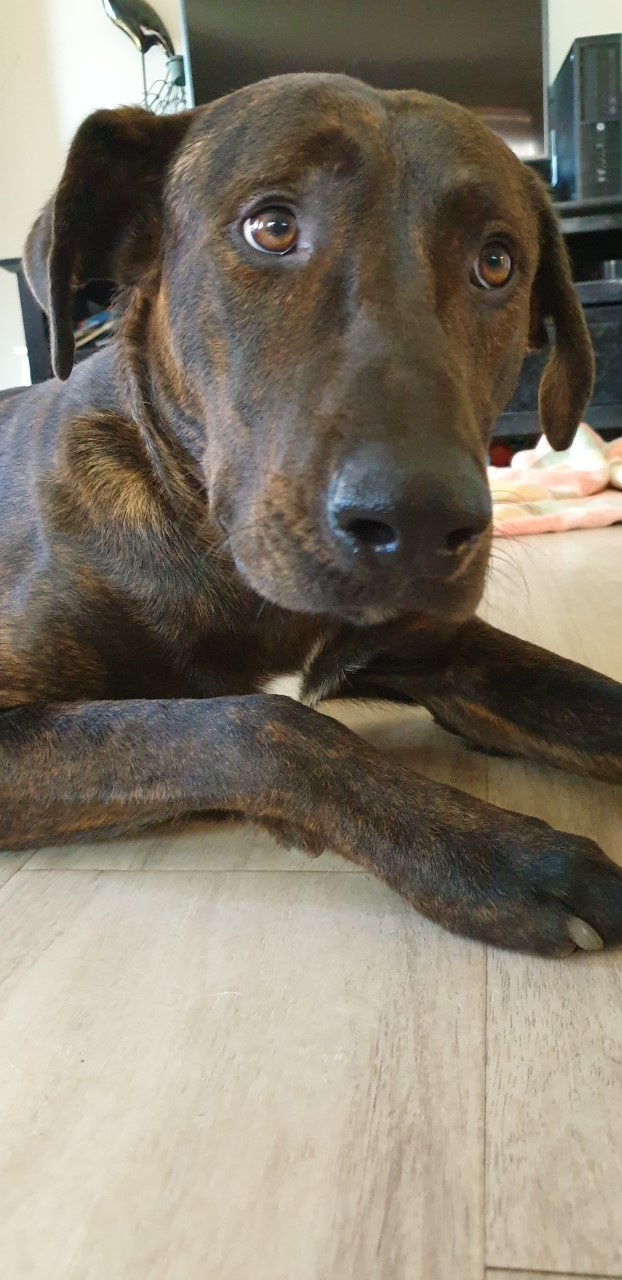 He is an inside / outside dog at present which is helping with his timid nature towards people initially. His inside manners are improving daily. Harry sleeps inside with the family and is learning to have manners with both his 2 and 4 legged friends. He currently lives with 2 other large dogs 35kg (male) and 48kg (female) happily and is learning to engage in healthy play and interaction. He seems to gain a lot of confidence from the other dogs so would be best suited to a family with a calm and confident dog of their own. He can be a little food protective so he needs to be fed separately.