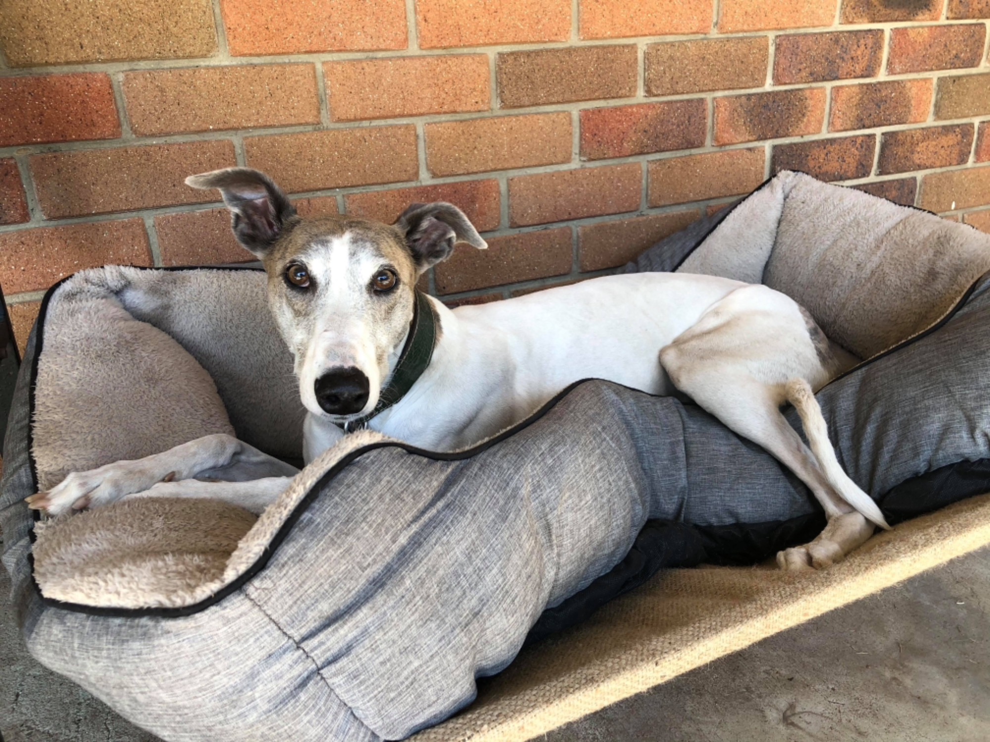 She loves to do zoomies around the the back yard late in the afternoon with the other greyhounds but equally enjoys cuddles with her humans and sleeping on her bed or on the couch. She will make the very best companion for someone as she has such a beautiful soft and gentle nature.