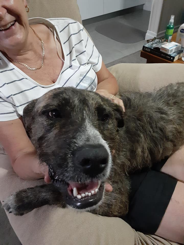 I currently live behind a mesh fence approx 1.5m high. While I could easily jump it, I never have- I seem to know where my safe place is! My ideal home has another dog/s for company, and if you have cats we must be kept separate unless being directly supervised (no 'outdoor'/roaming cats) as I have not met any cats since coming into OTC care, so my rescue can't promise I am cat friendly. I love to be a lap dog (there is no such thing as too big to be a lap dog!) and am very much a couch potato. I love my morning walks, and am working on my leash skills. I behave well while being bathed, even though we don't think I have had many or any before - same at the vet! I had NO vet work done prior to coming into the rescue, and was very nervous but quickly realised, everyone here has treats! I LOVE THIS PLACE!
