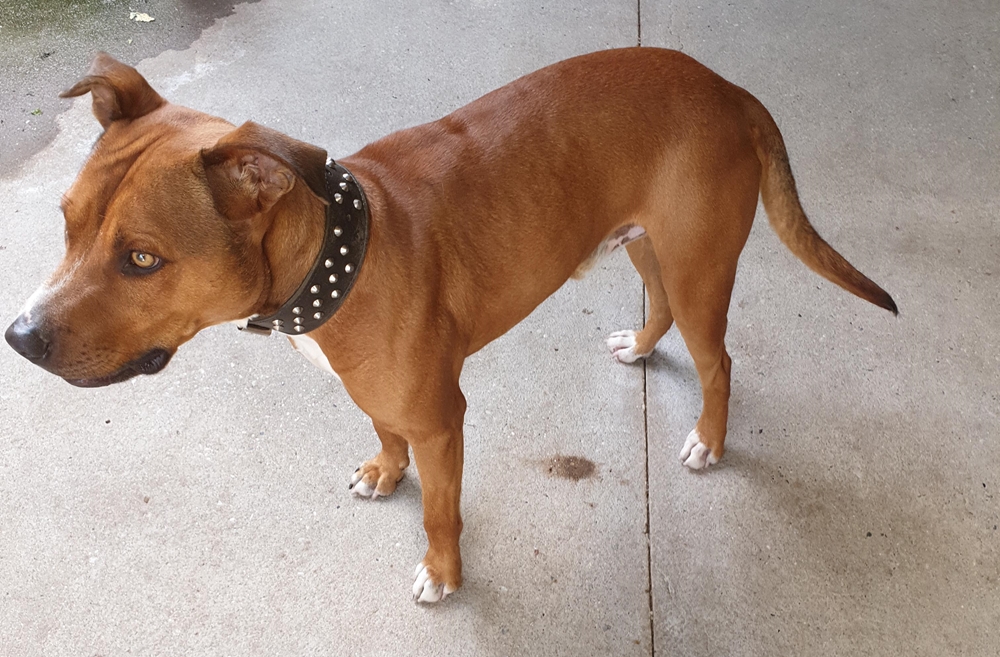 This handsome happy staffy boy is Humphrey, Lorraine calls him Humphrey Bogart!