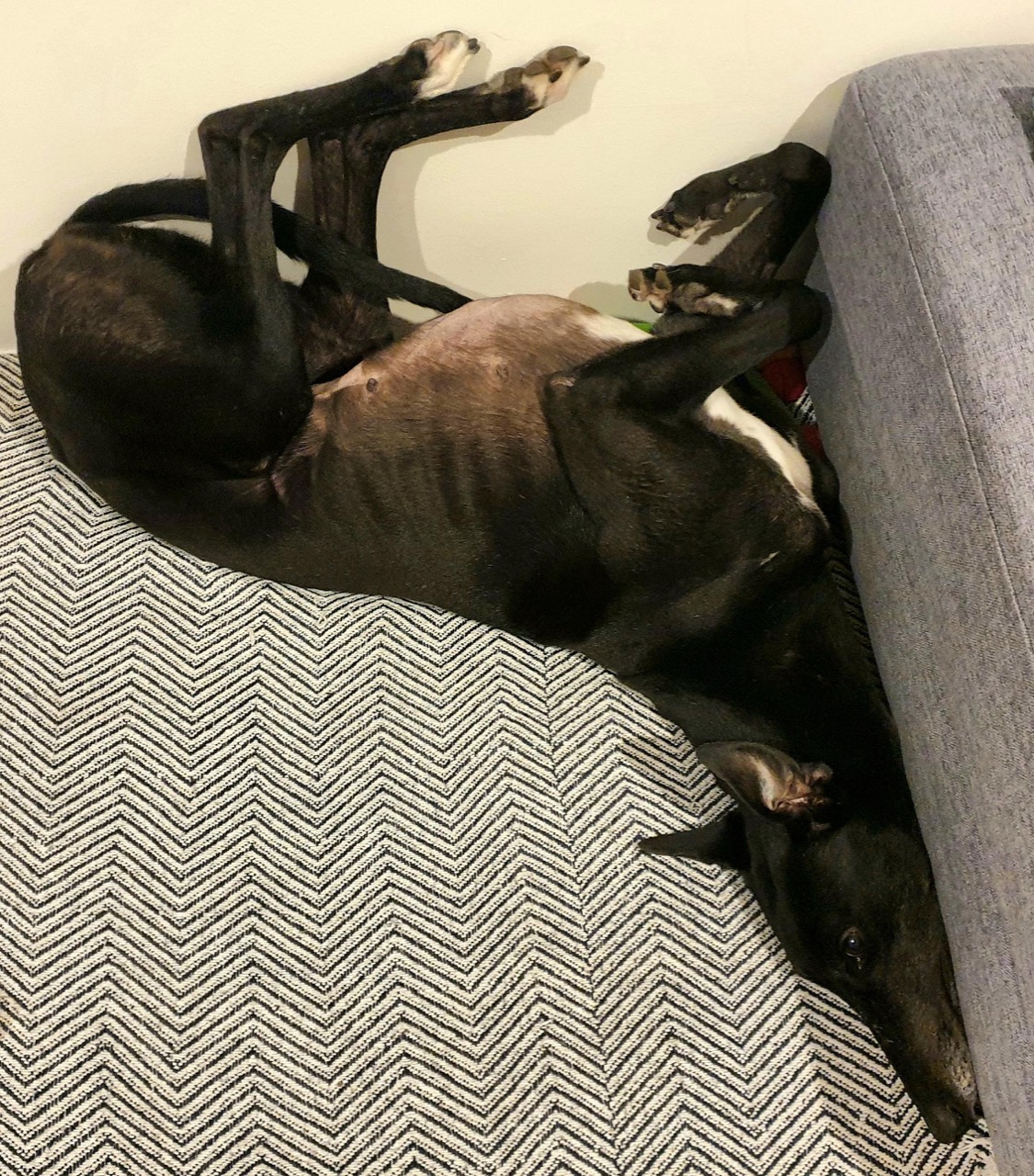 Dogs are pack animals and Greyhounds, in particular, are very familiar with being surrounded by other dogs in their racing kennel environment. For this reason, when left alone without people or other dogs for company, they can be prone to separation anxiety which can manifest in destructive and/or noisy behaviour. Yes, they may "grow out" of it after a few weeks in their new home, but why put the dog through that stress to ultimately live all day alone, while everyone is at work? As a result we do not rehome dogs into households where they are left on their own for more than 4 hours per day, without either people or another dog for company.
