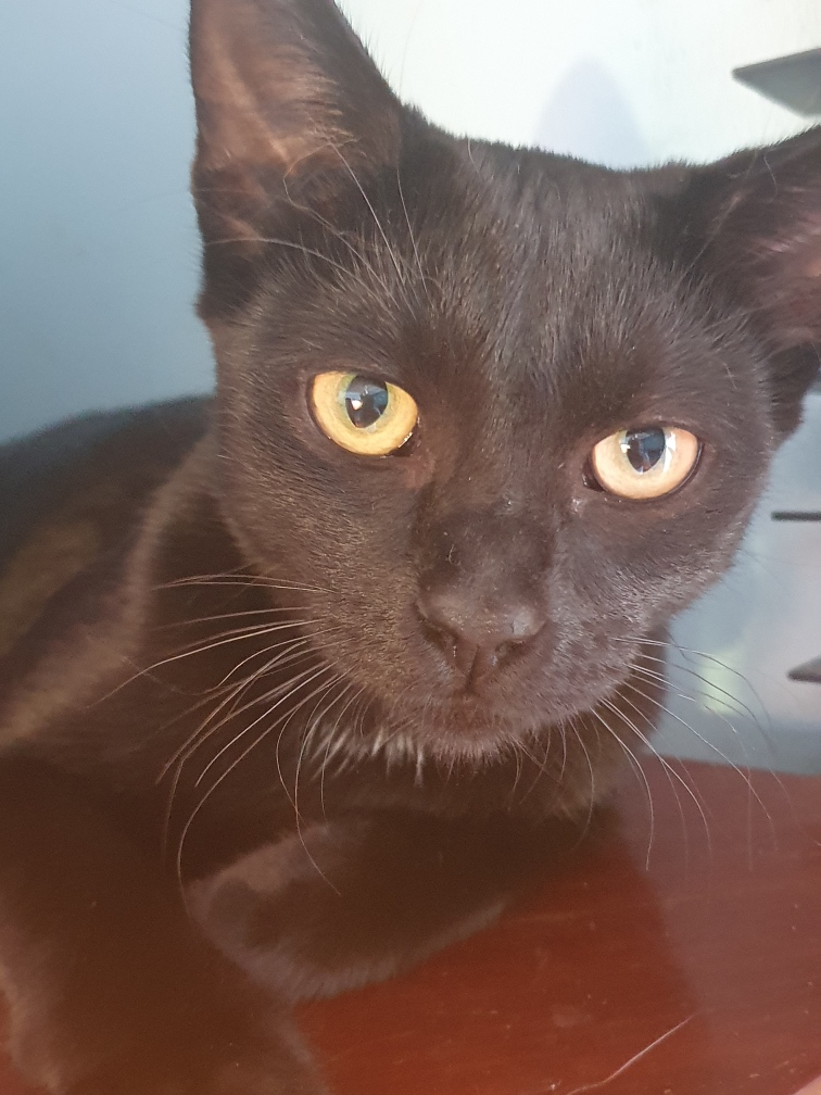 Enchantress is quite an agile cat that does impressive flips when playing. She is happy to lie down next to you for a head scratch and pats and is currently is foster care with a family that has children.