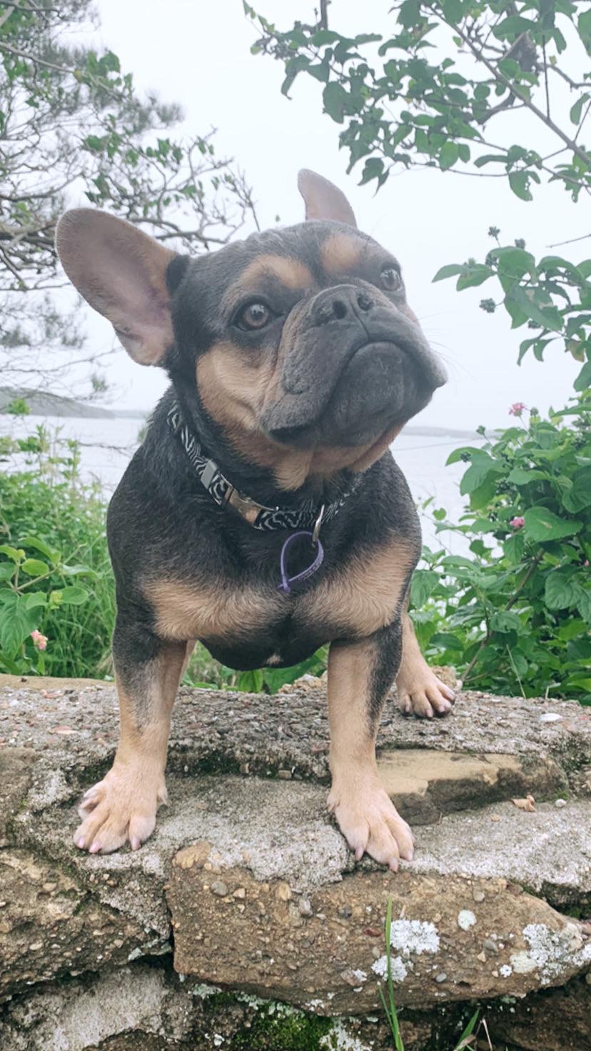 Despite their glum expression, the French Bulldog is comical and entertaining. They are quite stubborn and can be challenging to train, yet also surprisingly sensitive, remembers what they learn, and responds well to early, patient, persistent training that utilizes food motivation. Grem enjoys his outings whether that be walking or riding in the car.