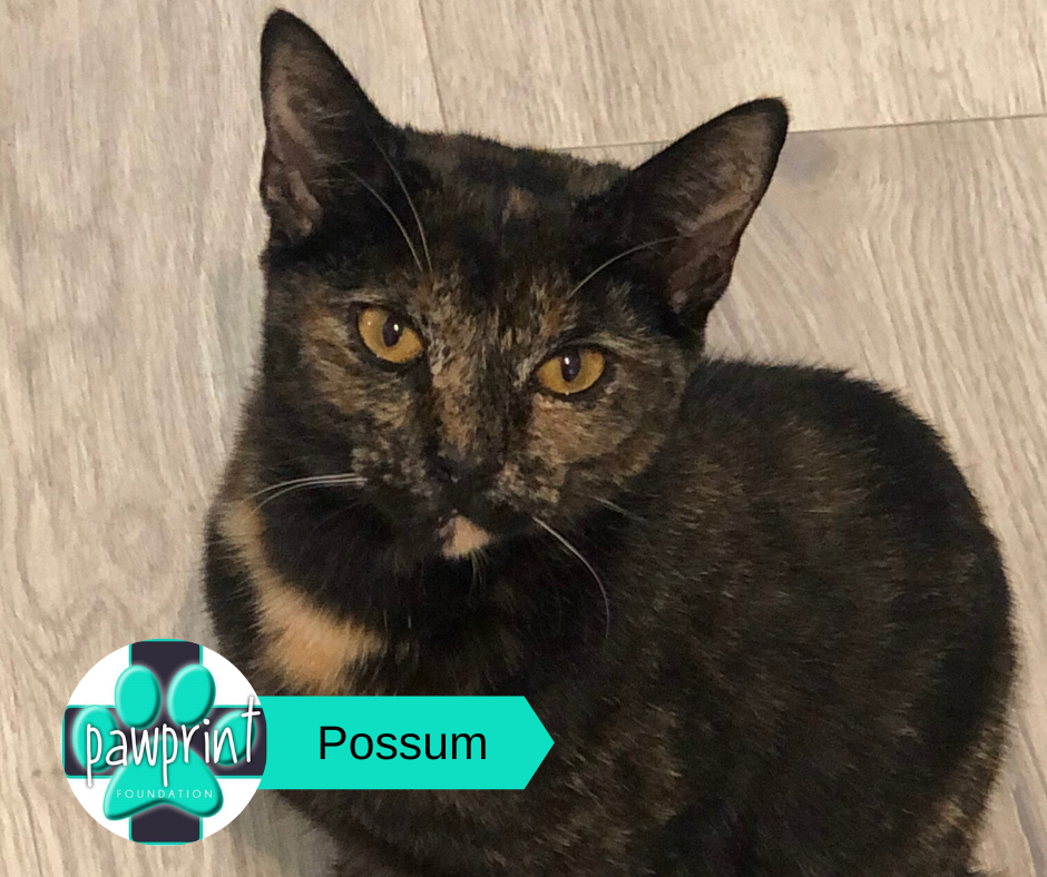 Possum is a tiny girl and looks even more so as she has no tail. She makes up for this in her feistiness - you will know if she’s hungry or wants a cuddle. Super confident around a big house dog and 2 resident house cats and other foster kittens. Loves to play eat and sleep