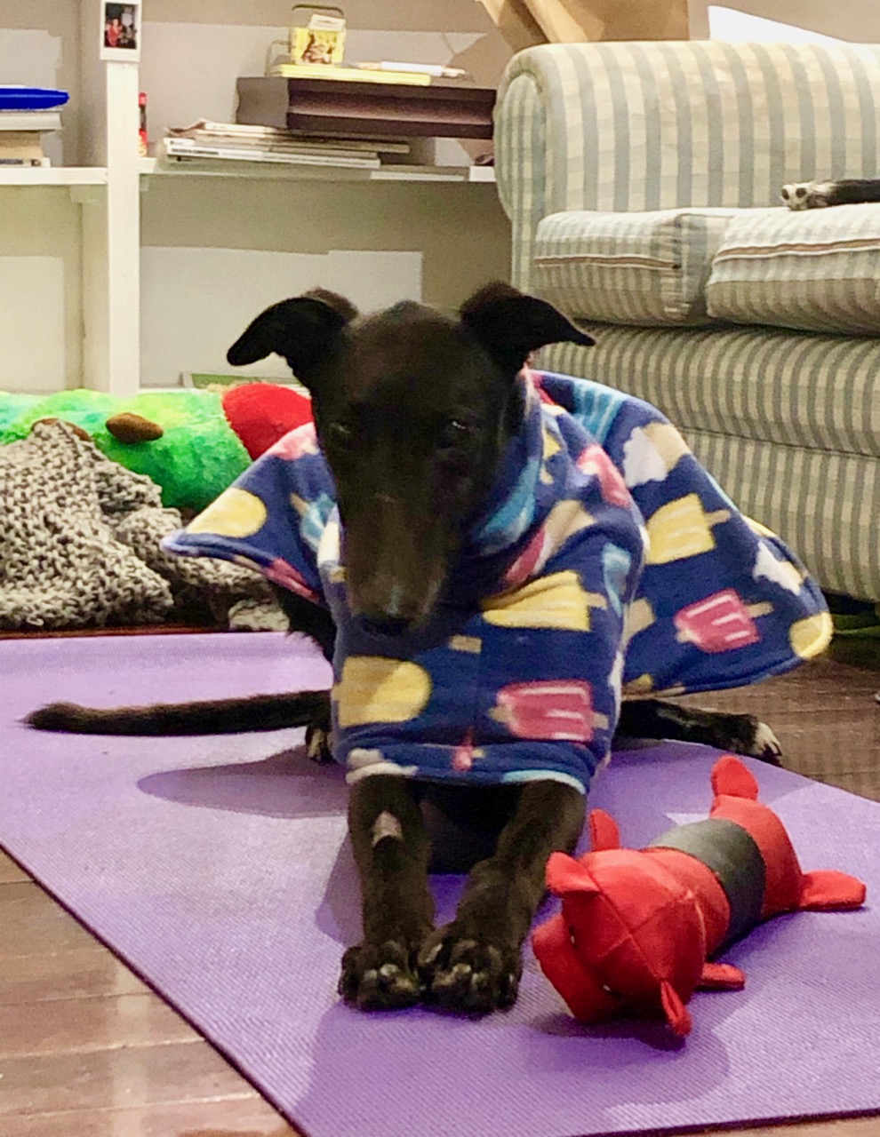 Beyonce doesn't really believe in personal space, she has a lot of love to give and would enjoy living with another greyhound. She is still quite confused by other breeds and becomes quite tense when she sees other dogs that don’t have her same length and elegance. Her adoptive home would ideally have multiple family members so that there is always someone to play with her. Beyonce is particularly crazy about balls, even basketballs and enjoys playing defense against her foster family.