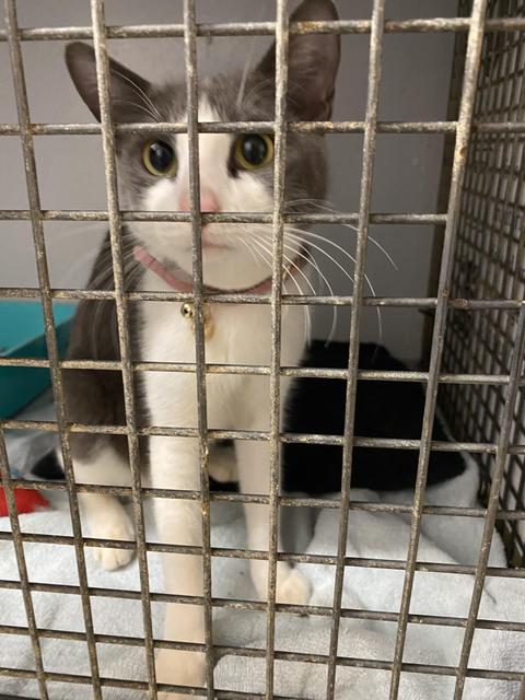 Beautiful grey and white lady named Wren. Very smoochy and affectionate - loves quality time with humans and lovely with other fosters kitties.