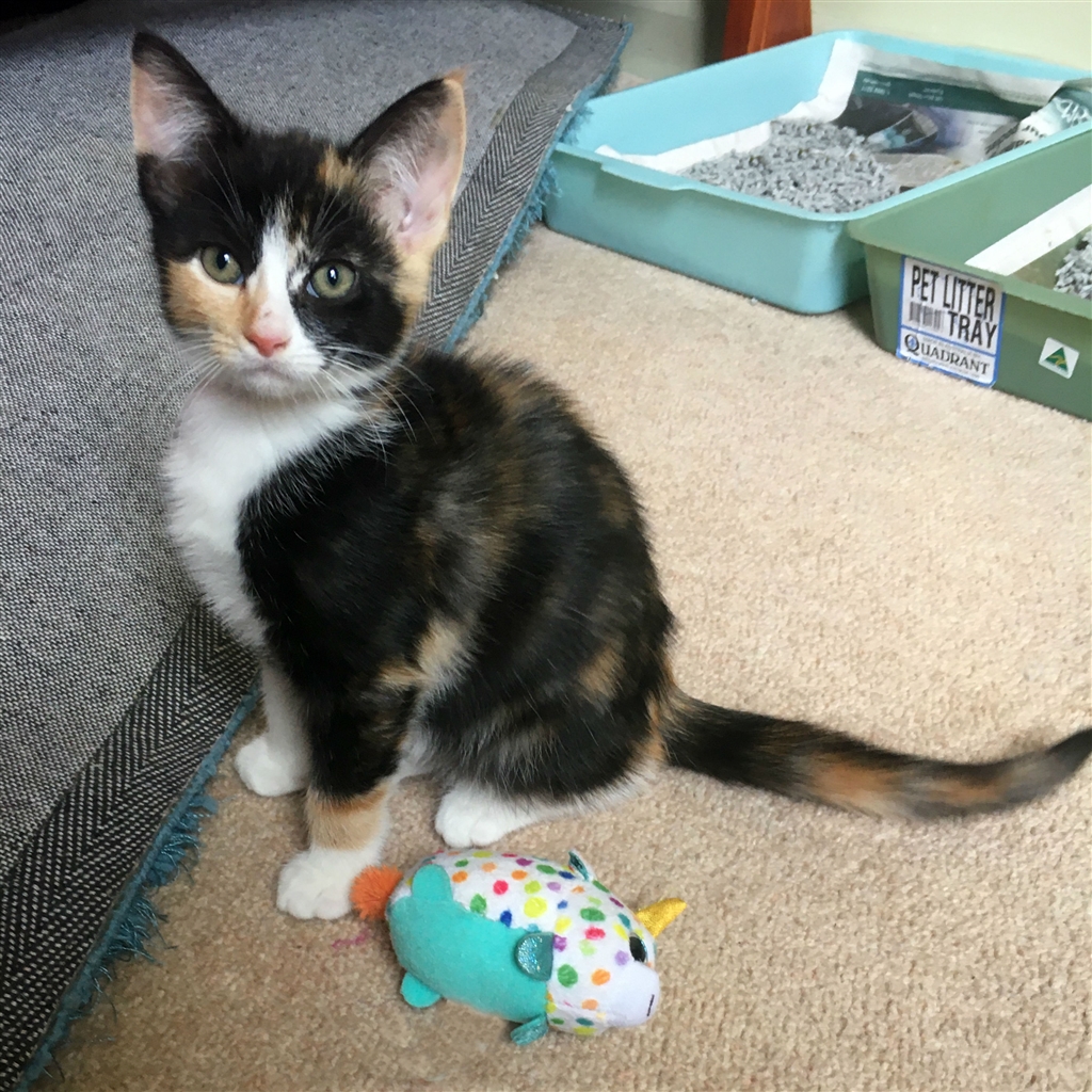 Violet is a very sweet and loving young lady who needs a little extra TLC to come out of her shell. Born at the shelter Violet and her siblings were lucky enough to spend some time in foster care whilst they grew up. Like all kittens she loves to play, eat and sleep. Although she can appear quieter than other kittens when you first meet her, Violet doesn't take long to come out of shell and her playful curious nature to show. Violet would be well suited to any sized family that is ready to welcome a new loving family member.