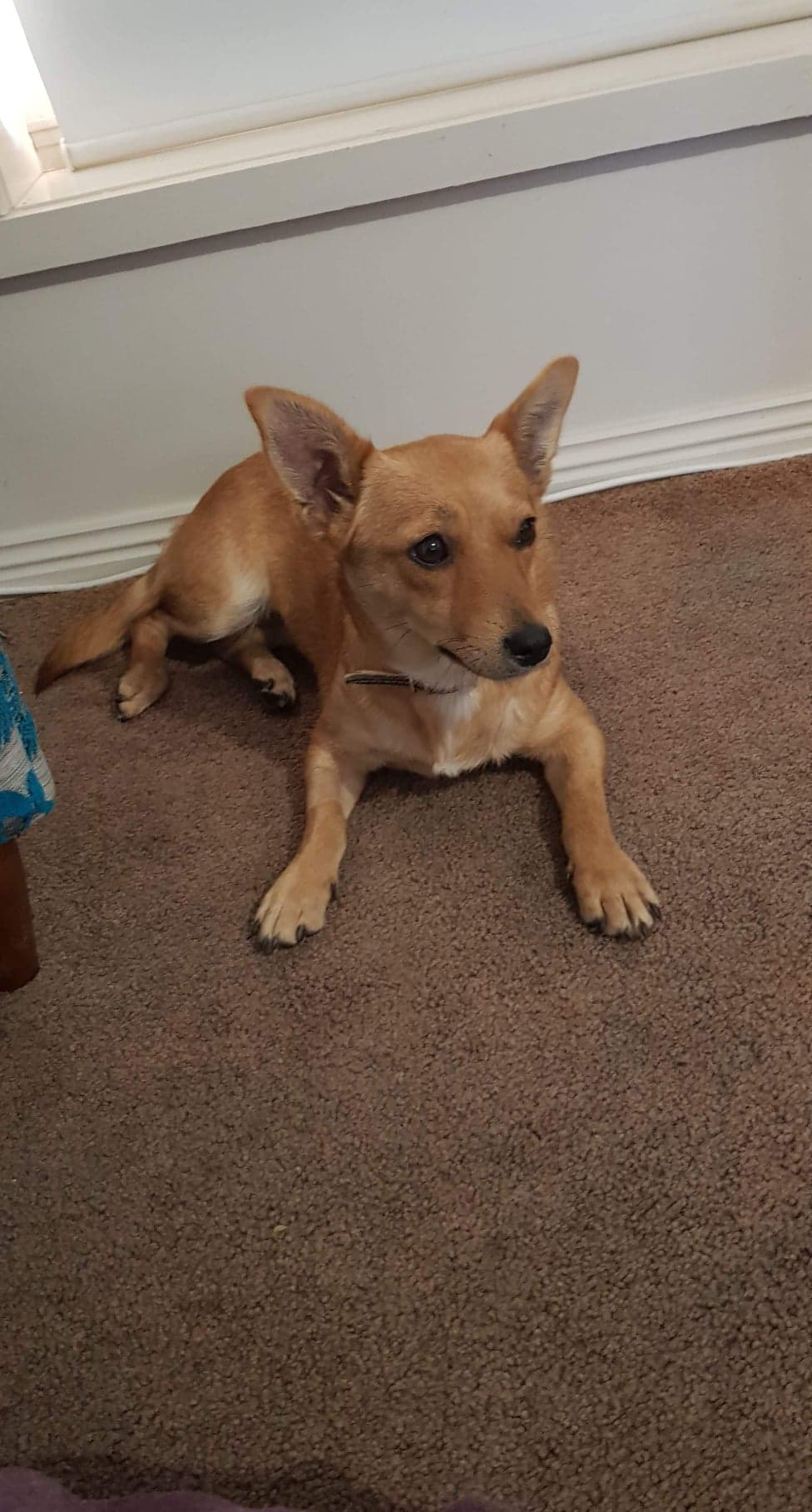 Little Vixen has eyes that will melt your heart, she is a sweet little girl looking for a home of her own. Vixen is a little shy to start with but when she warms to you she will be your little shadow. Vixen is good with other dogs after a slow introduction, fine with cats, and good with gentle kids. She likes to join in kiddie games and follow them around wondering what their next game will be. Vixen is still learning about this big world and all it has in it, she would love her new family to ensure she has exposure to all things the world has to offer a young little doggy. Vixen loves pats and attention and will be a very loyal and devoted friend, she will sit by your feet or by your side on the couch and nap. She is such a sweet loving girl who deserves a loving home and family.