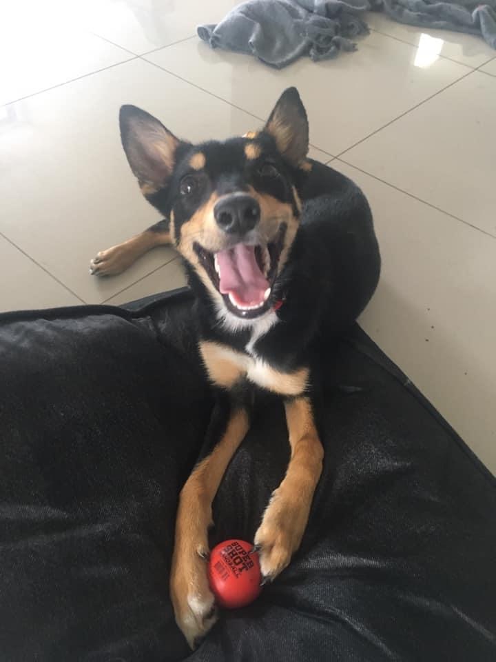 The lounge, his bed or his crate are his favourite relaxing places. If you’re on the lounge it’s almost guaranteed Kobe will be laying with you for cuddles.