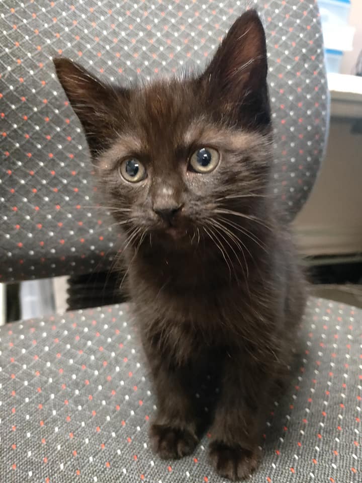 James is a typical kitten, full of playfulness and curiosity. He is currently housed with his 2 brothers and they love to play and get along with each other very well.
