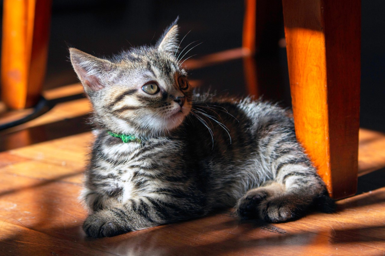 Possibly not the most enticing name… but she got it when she was still very small because she used to bite all her siblings. She is simply a very playful cat, not so bitey anymore! She loves chasing toys too, snuggling with her siblings and wrestling for long periods of time. If your looking for a fun loving exuberant kitten shes your gal.