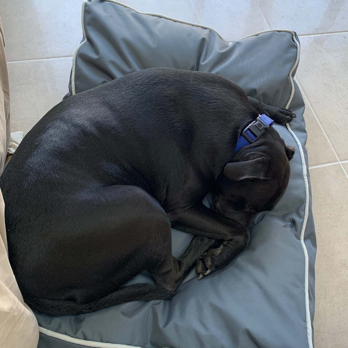 Diesel loves his daily walk/runs and can be a little bit strong on the lead initially but settles within a couple of minutes. Due to his size (approx. 35kgs) a harness or halti is recommended to make things easier. Diesel loves nothing more than a visit to the dog park or beach so he can play with other dogs and is quickly learning how to read dog body language and how to be polite.