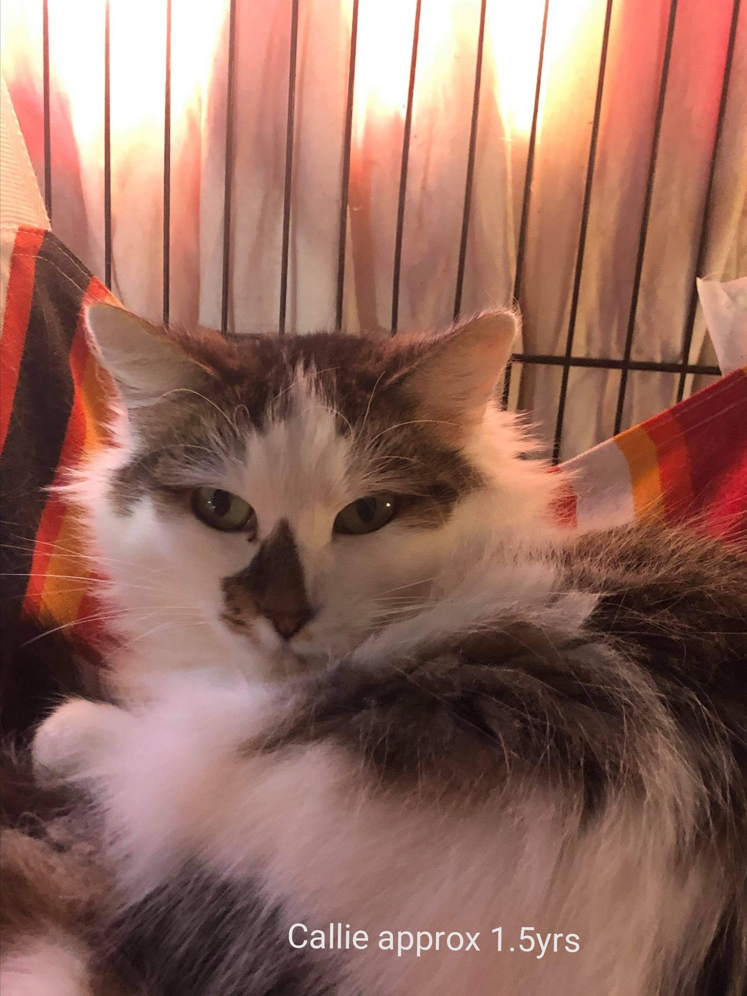 Callie is sweet young girl who needs time to trust humans again as she and her 3 babies were dumped and left to fend for themselves at a location we were trapping at previously. We are just putting her beautiful face out there and try and find her forever home. Someone who is willing to put in the time and effort. Callie just needs one person to set up and adopt her could it be you?.