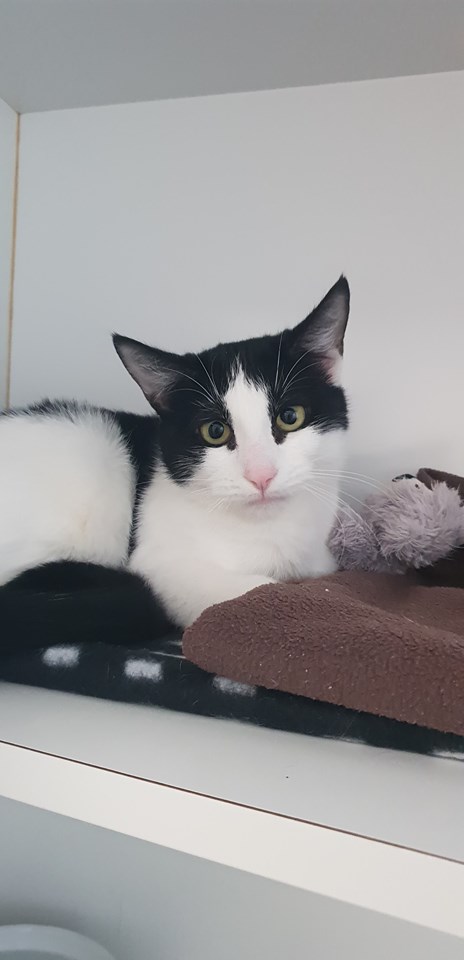 Little miss Edith is a scaredy-cat looking for someone ready to take up the challenge of winning her heart. Coming to us off the street and with a kitten in tow, the cattery environment has really not helped Edith's stress levels, and it has been a real battle to get her to trust us. When she thinks we're not looking she happily plays and is very food driven, so we know that a person with a quiet, calm household and plenty of time, motivation and experience with shy felines will be able to win over this beautiful scaredy cat.