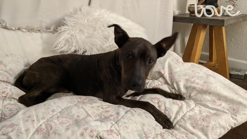 I enjoy cuddling on the couch and can curl up really small at the end of your bed if you let me. I suit a home where I am considered a member of the family and included in all the action. As I don't like being left alone for a long time, I need someone who is home more often than not and able to work on this with me. As I like a nice relaxed home, I'd be happiest with family members 10yrs+. I love playing and chasey, but I tire out quickly and am happy to chew on my toy instead.