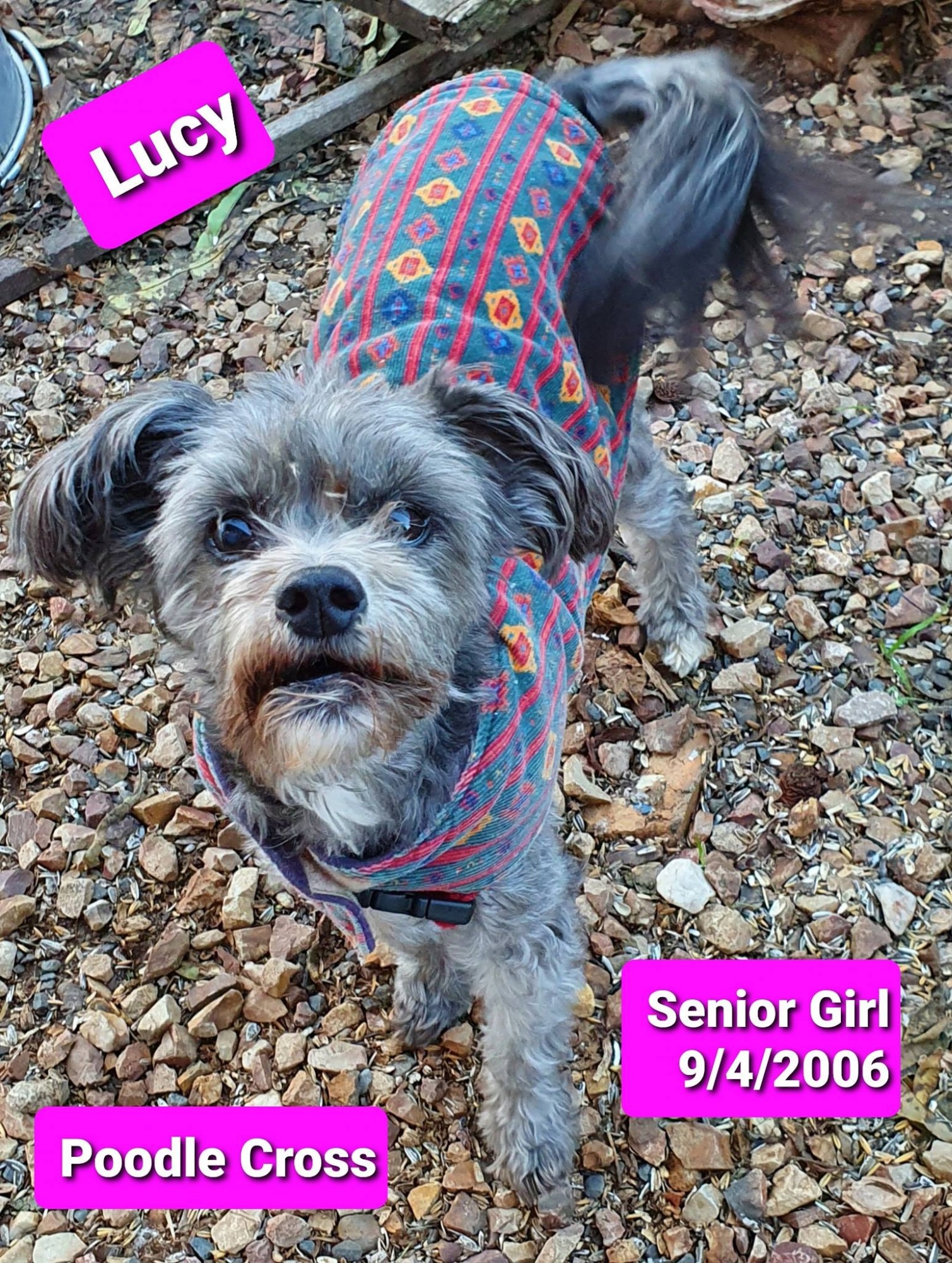 Lucy is a poodle cross that is good with other dogs and with cats. She loves human company and would be best suited to a home where someone is home a lot.