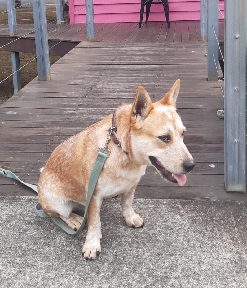 A sweet, happy, and calm 5-month-old deaf red cattle dog who loves a good pat and is keen to make friends. He is on the small side for a cattle dog with the cutest little legs and serious eyeliner that would revival Alice Cooper.