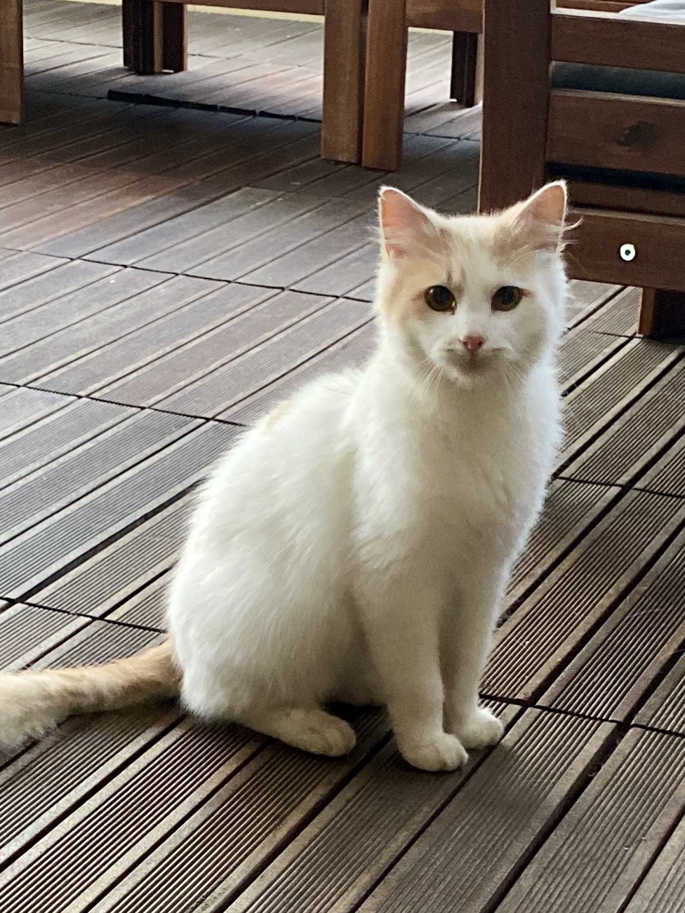 He’s quite a bold kitty that would suit most households as he currently lives happily with other cats, dog and kids.