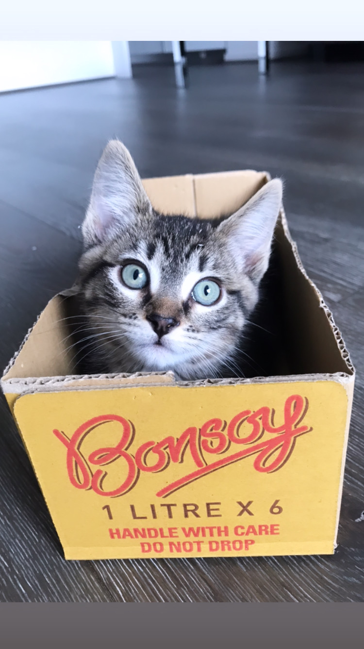 Gabriel will go to the ends of his tiny kitten world to ensure he is able to assist you by shredding your used post-it’s in the home office, sleeping beside your office chair and make sure your face is always licked clean. He will also groom your hair for you (you’re welcome!)
