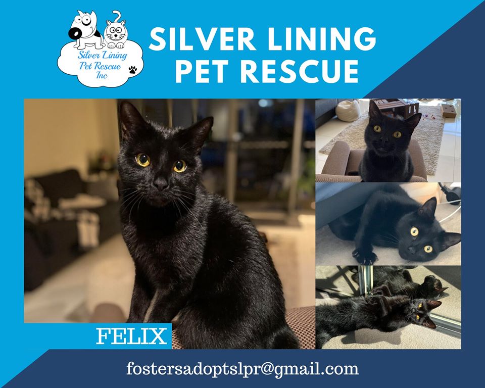 Felix is an all black, very sweet and loving boy. At a year old he has plenty of energy and loves to chat to you.