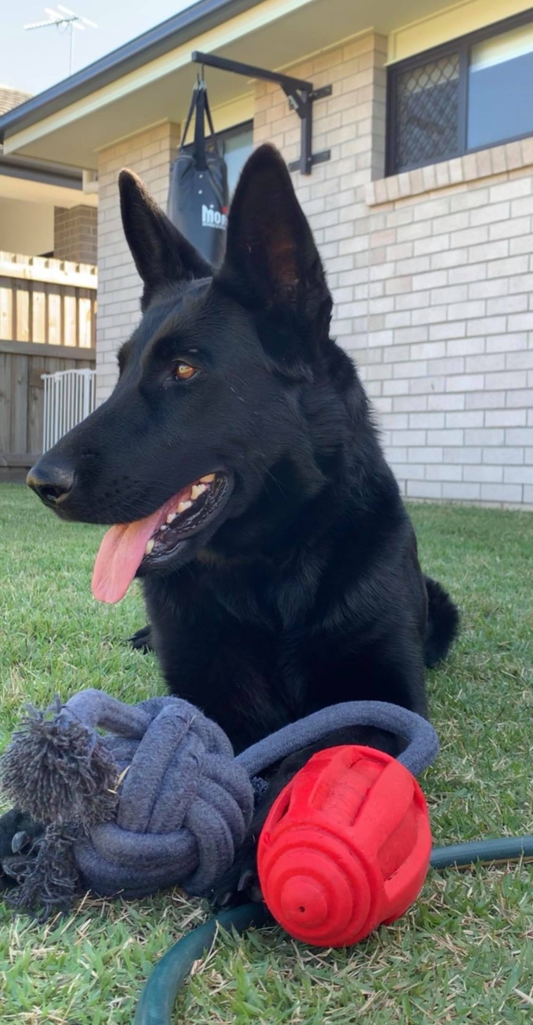 I am a happy girl who loves to play with the ball, (I do take the football off my fur brother atm), walks and just general play and of course when I’m comfortable with you – cuddles!!