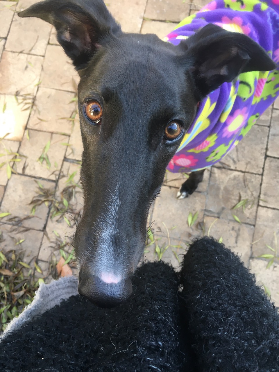 Lyla is calm and gentle with older children. She is calm with other greyhounds, but is not suited to a home with small dog/s.