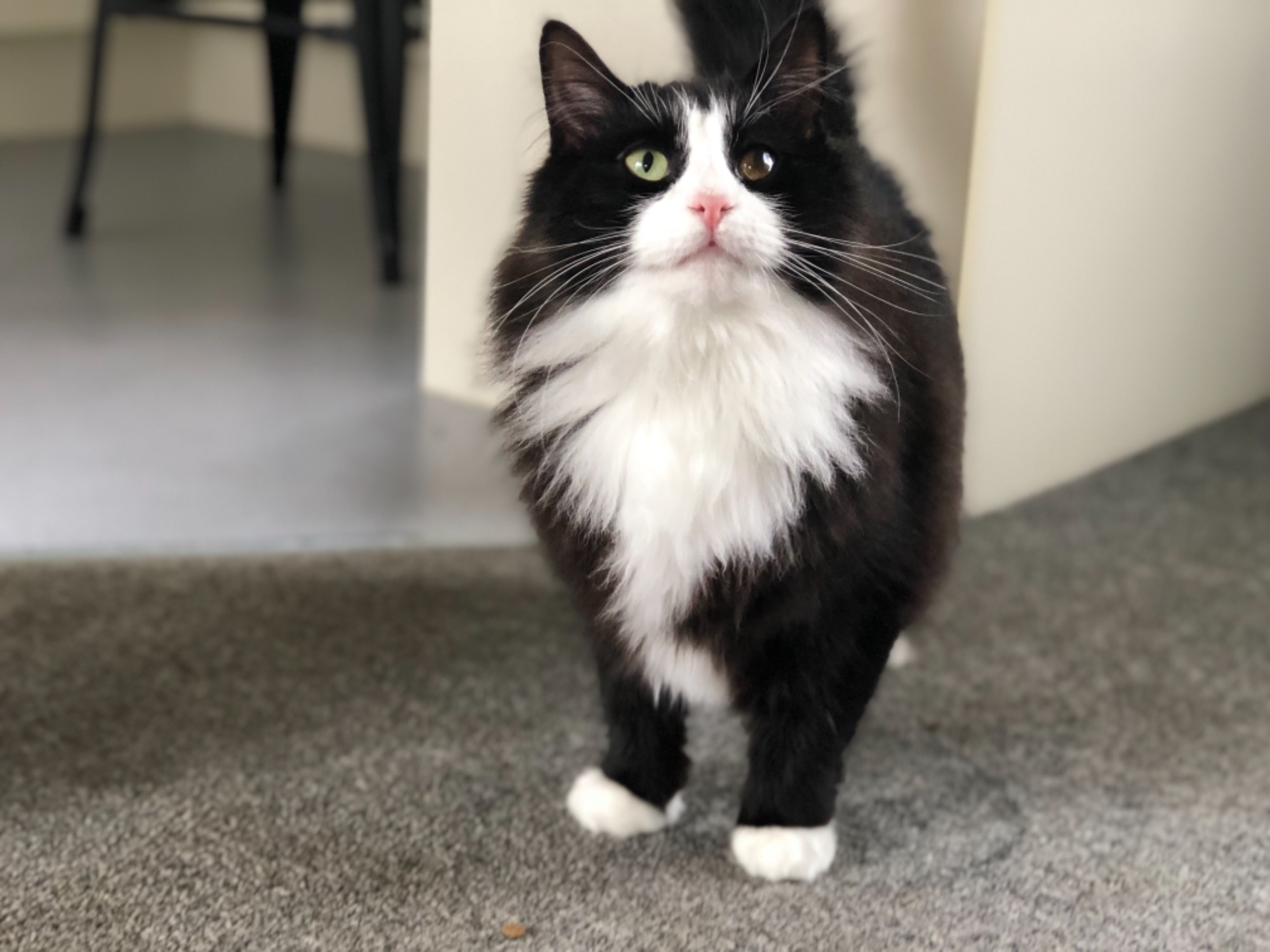 His most outgoing trait is his fierce affection. He is a big cuddly teddy who will literally spend every second with you if he had the chance. On your lap, seeking out pats or chatting and reaching up to you for some lovin'.