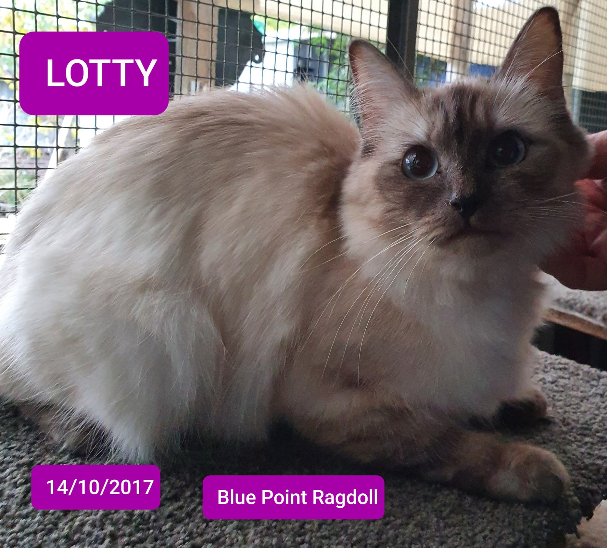 Lotty our gorgeous cat and dog friendly purebred Blue Point Ragdoll is now ready to start the journey of finding her forever family.