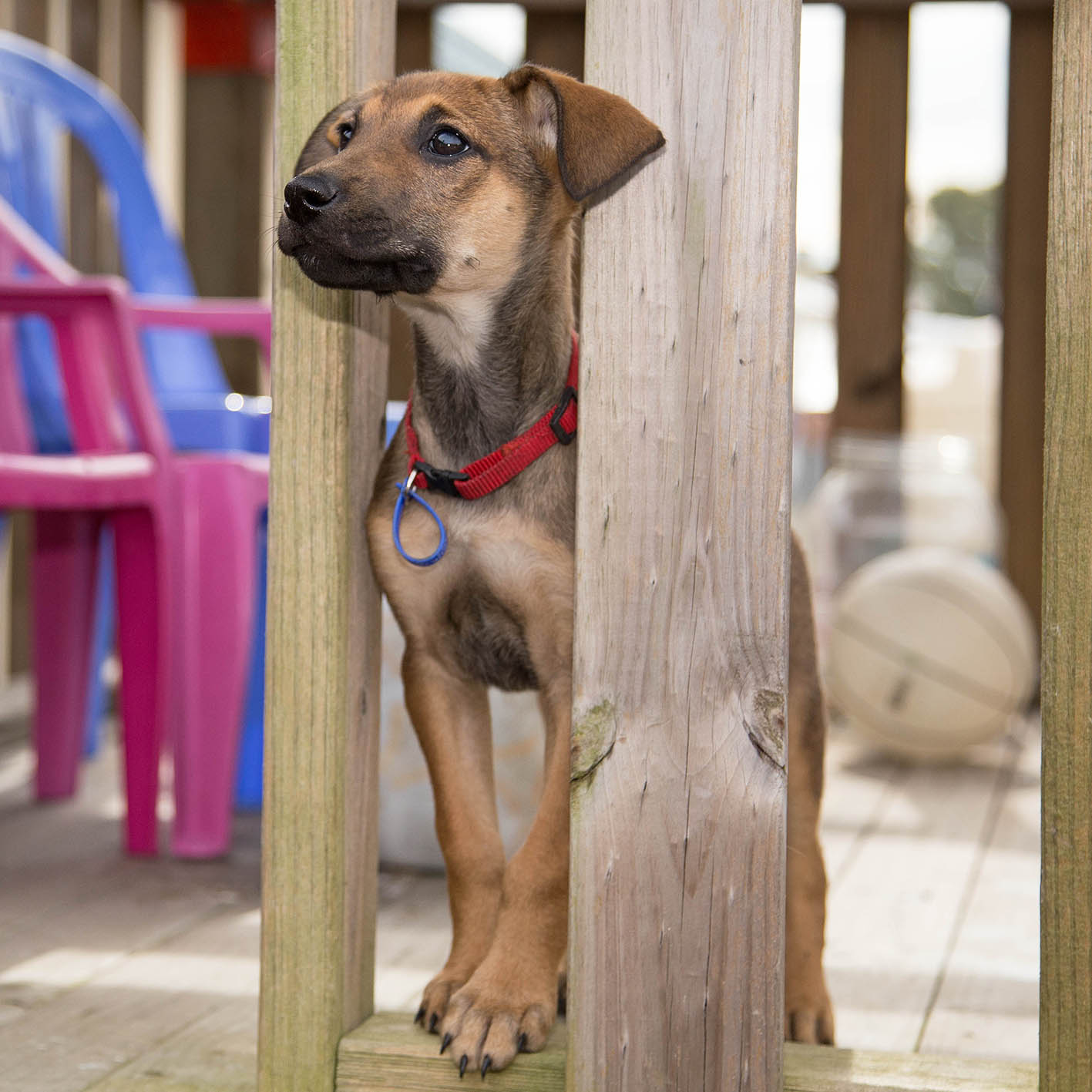 She’s a very confident puppy and loves to explore the yard with older furry foster friends so a friendly dog in her new home is a must.