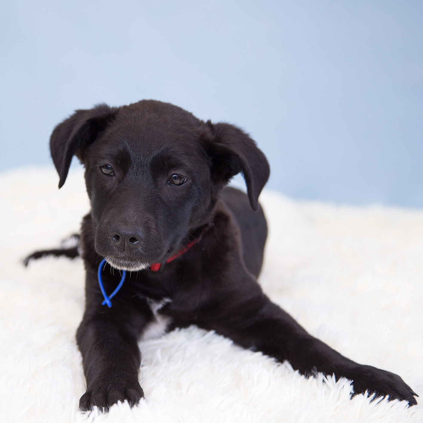 Raven currently lives with kids and big dogs along with her brothers and sisters and is learning lots from the older dogs she lives with so would benefit from going into a similar environment with an older patient dog as a teacher. She sleeps inside snuggled with the other puppies so will need to be welcome inside in her forever home.