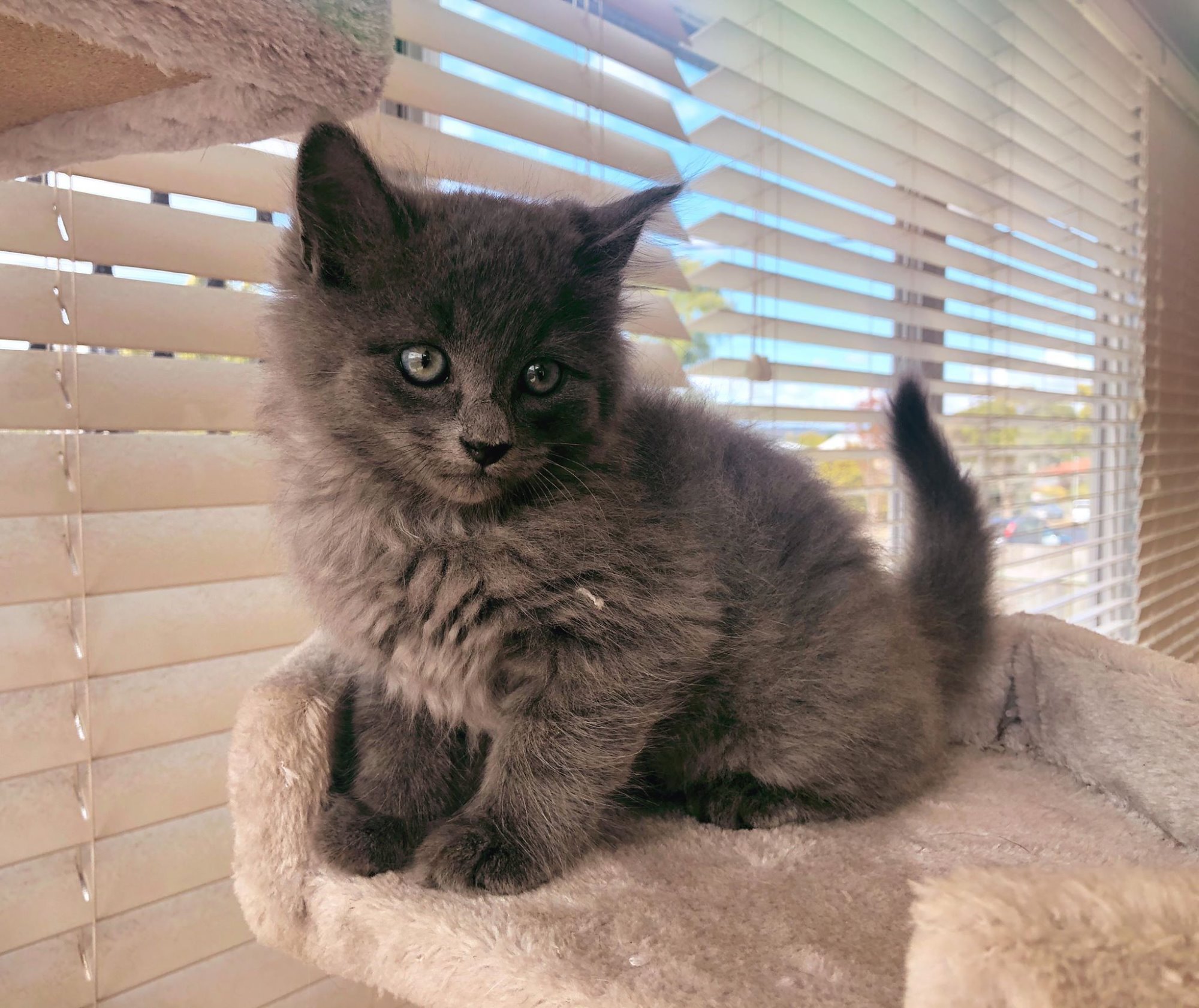 Ambrose is 6 weeks of age so ready in a few weeks ... He is Russian Blue X Persian so fluffy and requires brushing once a week ... He is a social boy and will fit all homes .. Holding deposit is required ... LOCATION TOOWOOMBA ... carolangelsrescue@gmail.com for more info