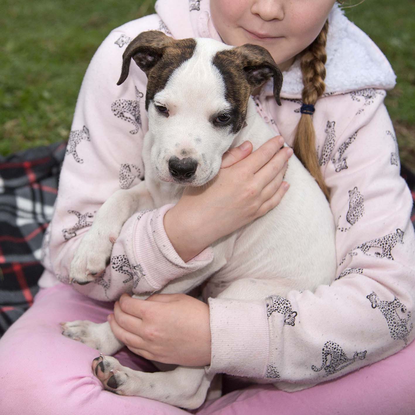 Zoe’s currently living with older dogs as well as other foster pups. If she was to go to a family with another dog, they would need to be very tolerant as Zoe likes to think of herself as the boss of everything. She sleeps inside snuggled with the other puppies so will need to be welcome inside in her forever home. She will be a wonderful family dog.