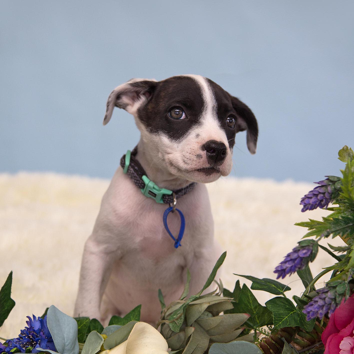 Ella’s currently living with older dogs as well as other foster pups. If she was to go to a family with another dog, they would need to be very relaxed and let her snuggle up to them. She sleeps inside snuggled with the other puppies so will need to be welcome inside in her forever home. She will be a wonderful family dog.