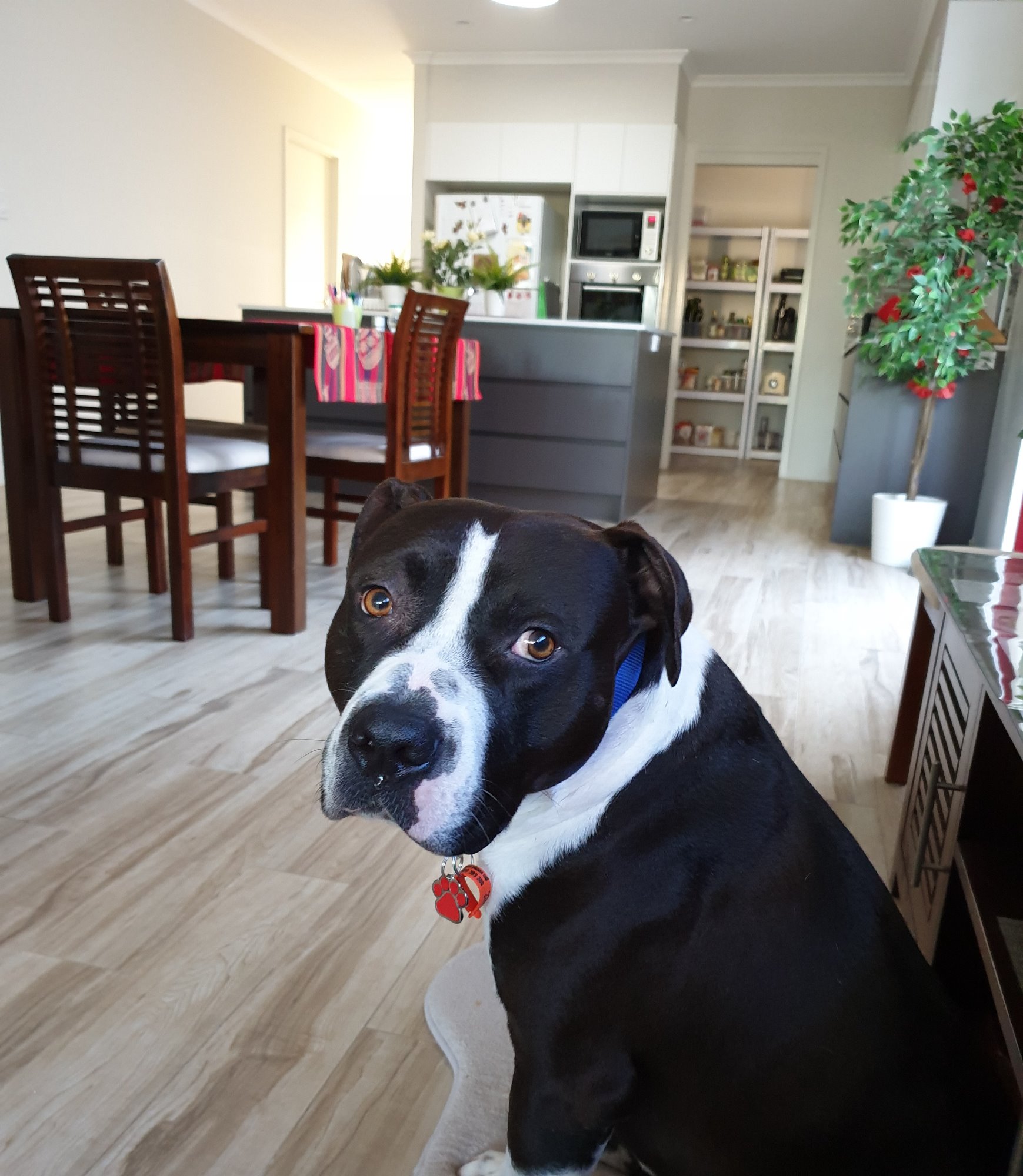 Aries has not been cat tested and would prefer a home without a cat or other small pets. He is fine to be left alone at times but being a staffy he would prefer to have his humans not be full time workers so that they can spend time with him.