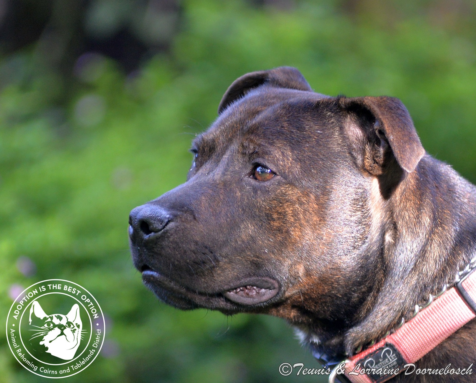 Tonto has been returned and is again available for adoption. The reason for his return is that we had no idea how he would react with free range chickens and it turned out badly however, in every other respect he is everything anyone could wish for in a staffy. We'd like to keep him close to us just in case he has any other hidden tricks up his sleeve that would bring him back to us.Tonto was born approx 01.06.17 and has just been rescued from the pound. He is an English Staffordshire Terrier but we can't provide any paperwork to confirm that but he is very typical of the breed in every way. Tonto has a very sweet nature and is friendly to other dogs, kids, cats. He has no food aggression and is in fact, very gentle and well mannered when receiving treats or eating around other dogs. He loves to be with people most of all and does fret a little when left alone but will settle as soon as he knows someone is home. Tonto loves hugs and cuddles and will be the most loyal and affectionate boy once he finds his own human partner or partners. It's hard to find enough words to describe what a great little dog Tonto really is. Someone will be very lucky to have him in their lives <3