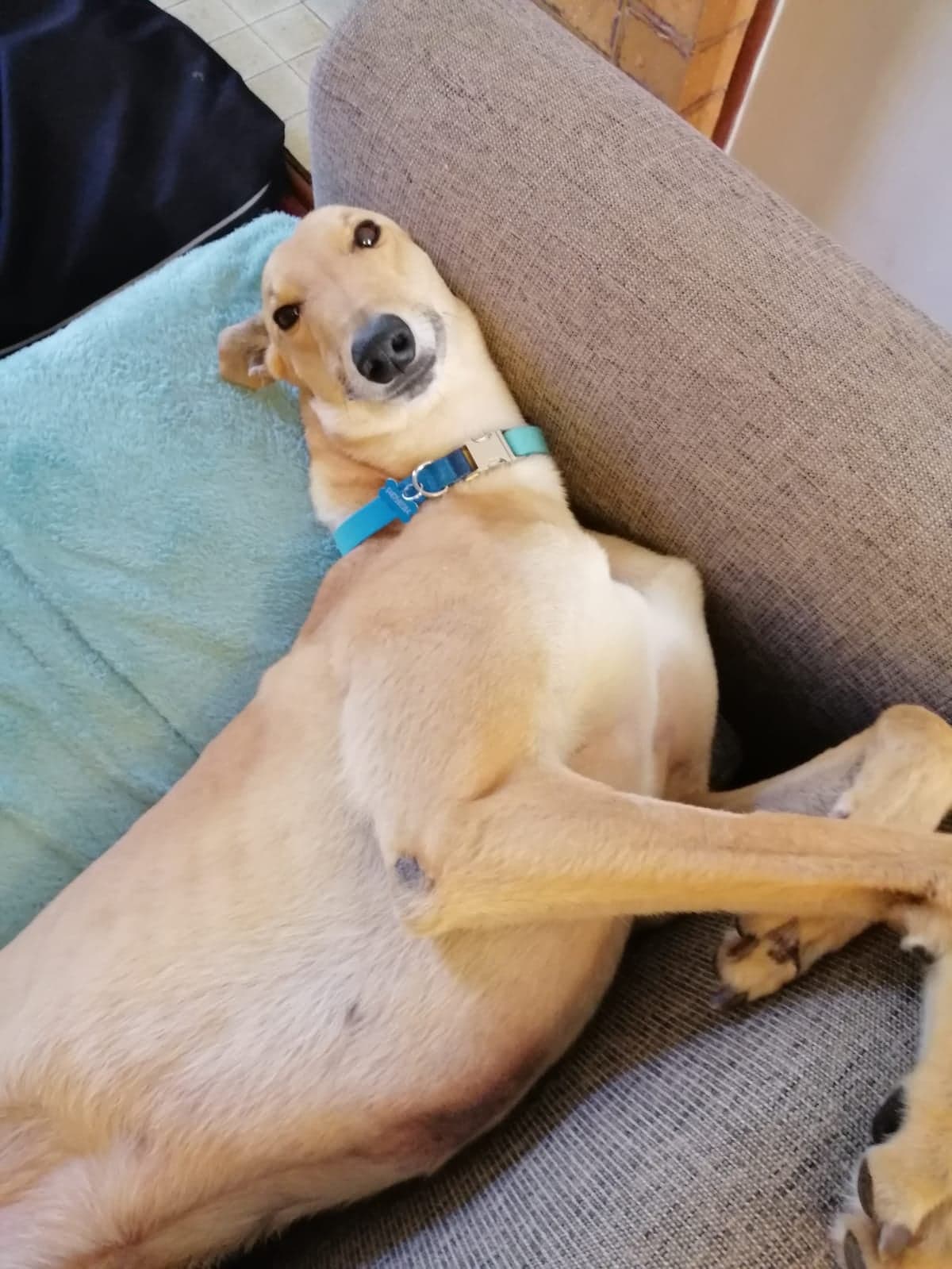 Other than the excitement mentioned above, he walks perfectly on lead otherwise, and like most greyhounds, (as you will see by the photo's) he is happy to spend most of his day snoozing/lazing around in a comfy spot, preferably with his human close by.